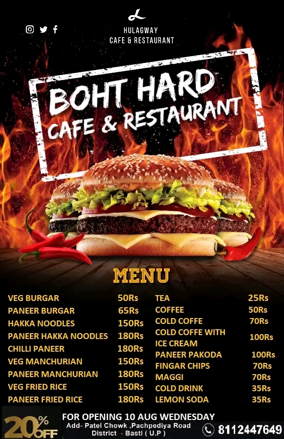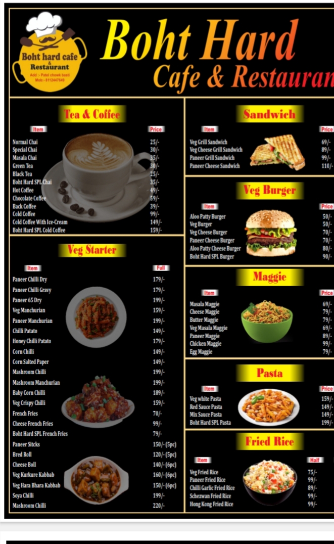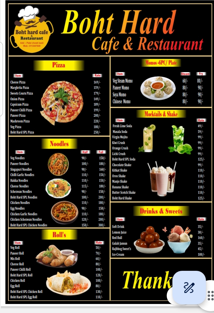 Welcome to Boht Hard Cafe and Restaurant, a vibrant culinary gem nestled in the heart of Patel Chowk, Patel Nagar, Didwana, Basti, Uttar Pradesh. This charming café is not just a place to eat; it's an experience that tantalizes the senses and offers a delightful retreat for food lovers seeking a flavorful escape.